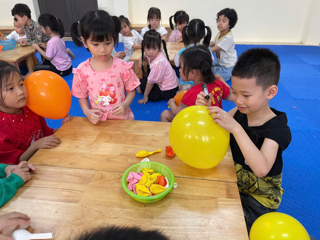 Hôm nay, các bạn nhỏ lớp G5 – Trường Mầm non Lam Hạ đã có một hoạt động khám phá khoa học vô cùng thú vị với chủ đề “Sự kỳ diệu của không khí”.Trong không gian sân trường thoáng đãng, các bé cùng cô giáo tham gia thí nghiệm với những quả bóng bay đầy màu sắc. Các bạn nhỏ đã cùng nhau quan sát, suy nghĩ và thử nghiệm để tìm hiểu xem không khí có thể làm gì và tại sao bóng bay lại có thể phồng lên.Khi những quả bóng được bơm căng, các bé vô cùng thích thú khi phát hiện ra rằng: